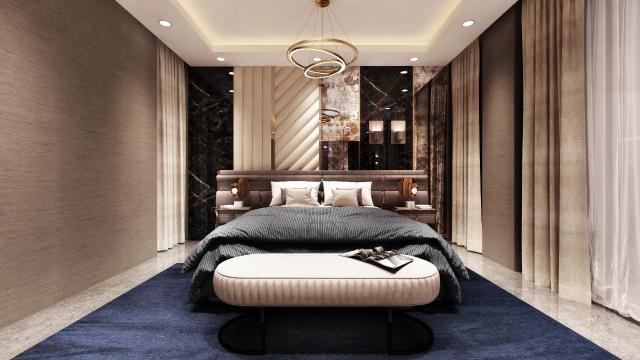 High-quality finishes and subtle textures enhance the elegance of a luxury bedroom.
